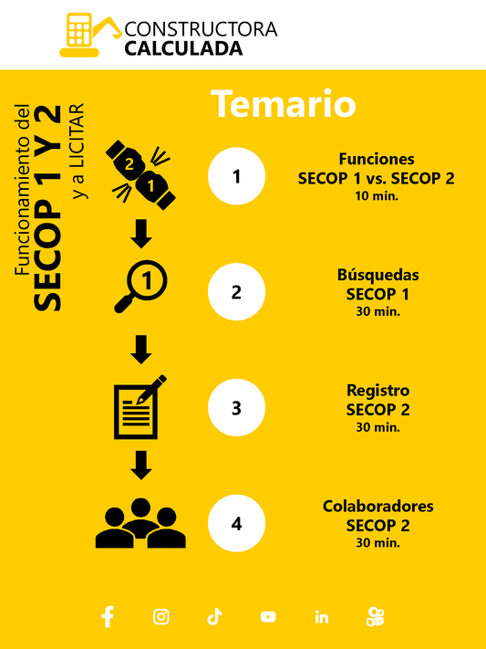 (Precio para 3 participantes) Funcionamiento del SECOP 1 Y 2 y a LICITAR - CAPACITACIÓN